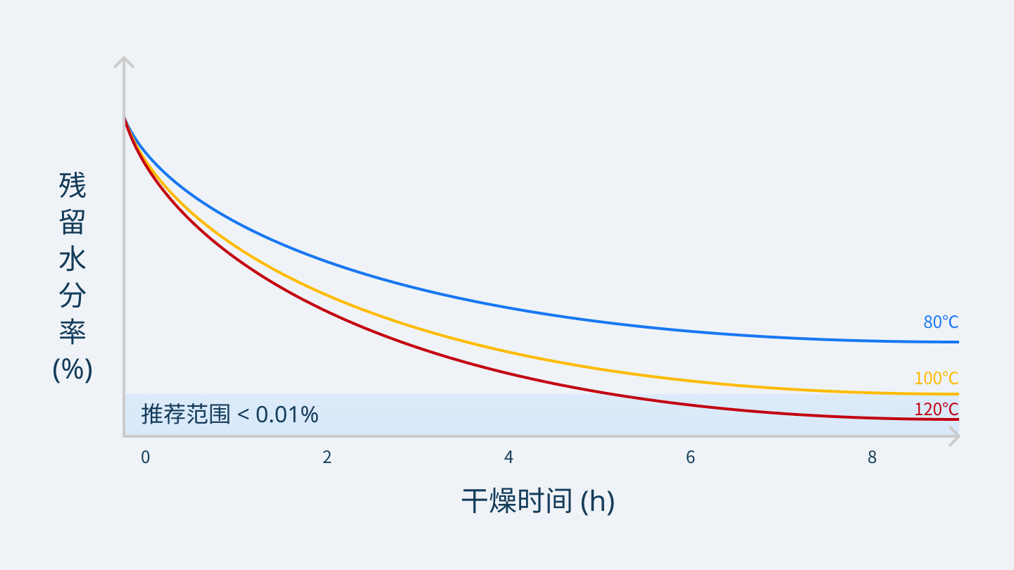 请注意,不同牌号的推荐干燥温度与干燥时间有所不同。