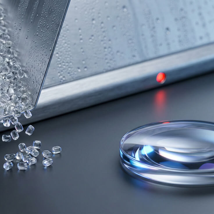 Hydrolysis is a phenomenon in which materials that contain ester bonds in their molecules—such as polycarbonate and polyester resins—react with water and the bonded sites undergo molecular chain scission.This degradation can cause variations in flowability, reduced strength, and molding defects such as silver streaks, bubbles, drooling, and stringing.Because Iupizeta EP, a specialty polycarbonate material, can undergo hydrolysis even under the influence of trace moisture, proper drying with appropriate equipment and conditions is extremely important.